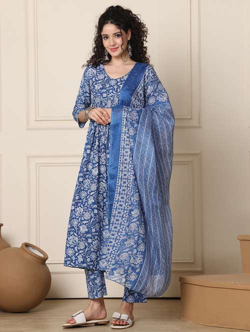 women three quarter sleeve kurta pant with dupatta set - 21930370 - Very Small Image - 1