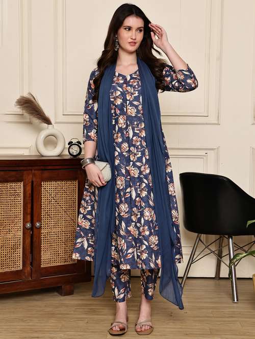 - Find gorgeous sets of ethnic wears in trending designs in blue colors suitable for casual wear of occasions.