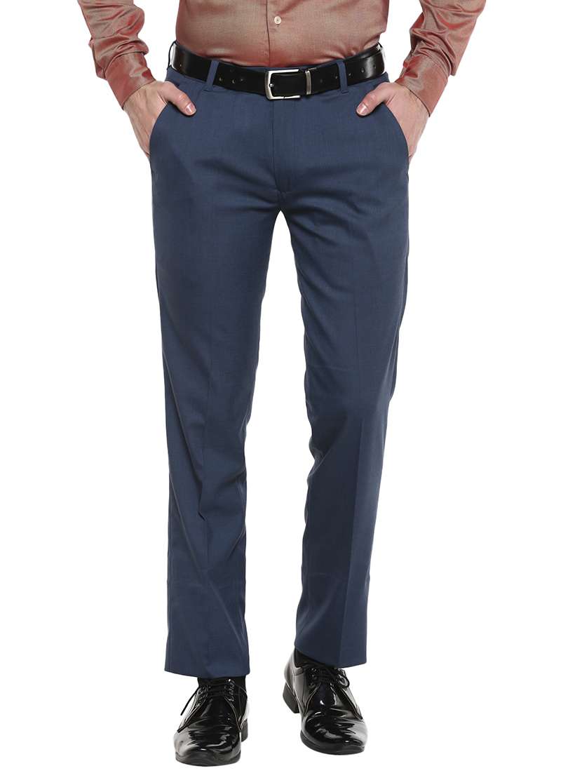 - » blue solid flat front formal trouser