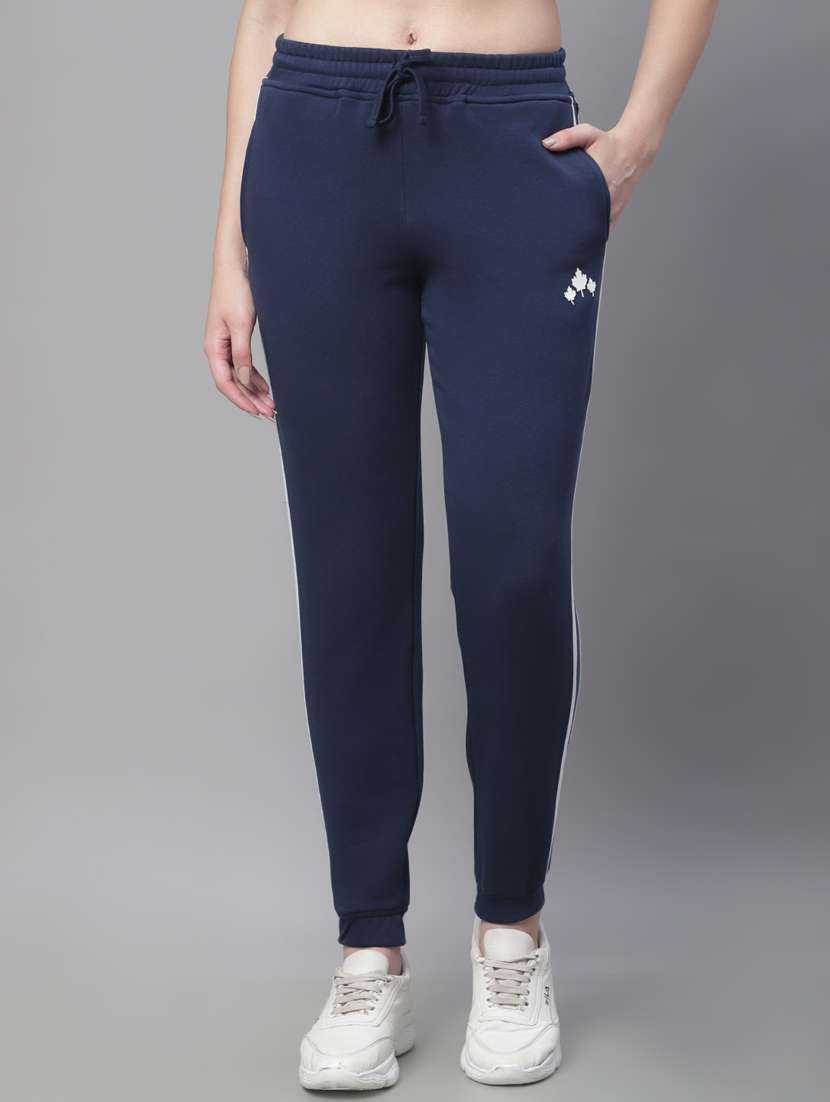 - » navy blue cotton blend taped track pant