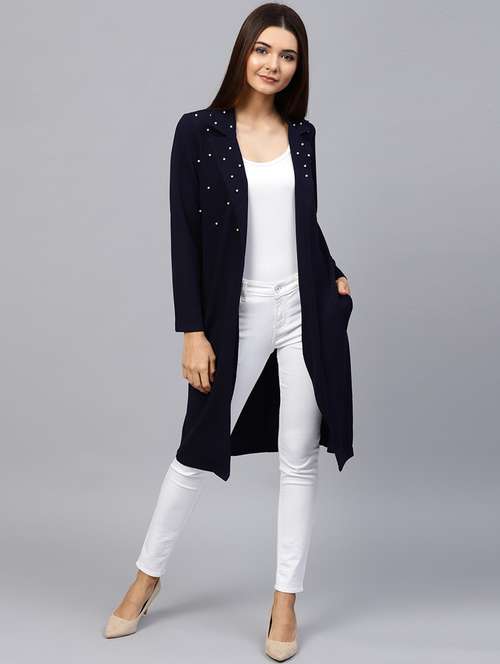 - » women navy blue cotton blend regular shrug