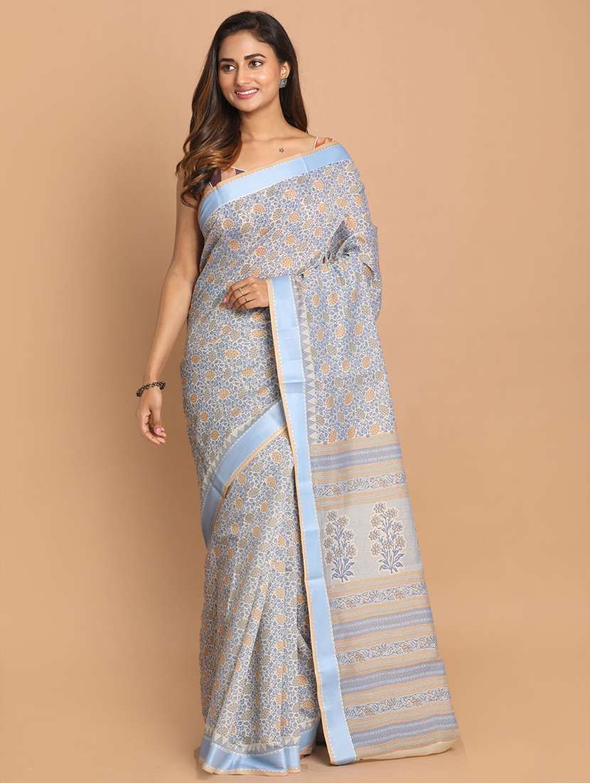 blue cotton blend gadwal saree with blouse