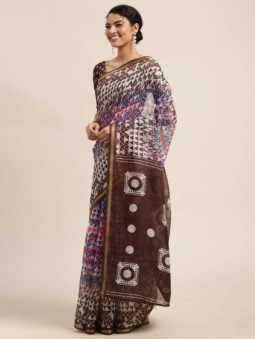 - » women's geometric brown colored saree with blouse