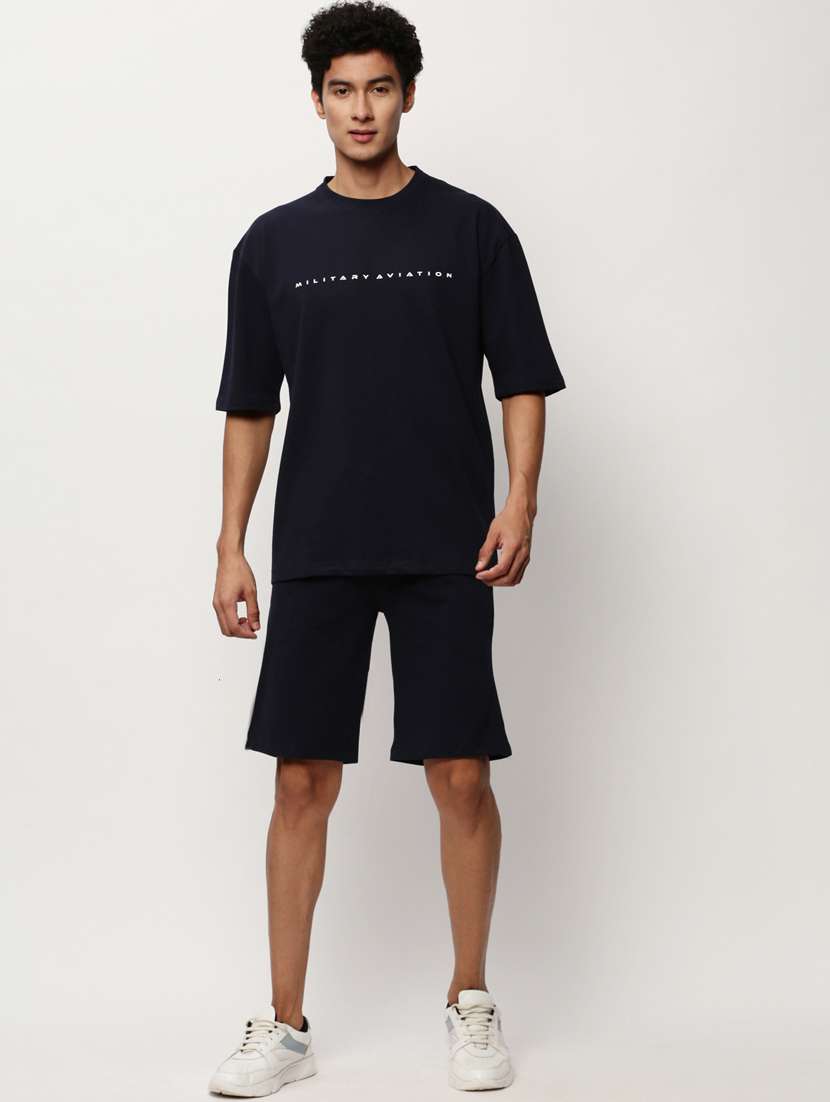 SHOWOFF Men's Round Neck Navy Blue Solid Co-Ords Set
