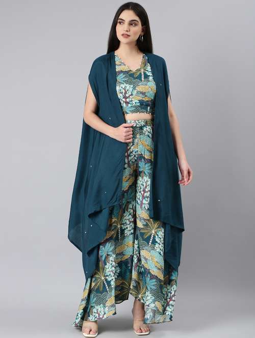 - » teal tropical print top and palazzos co-ord