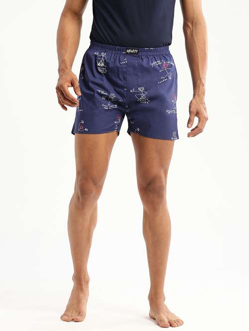 SHOWOFF Men's Cotton Slim Fit Printed Blue Boxer