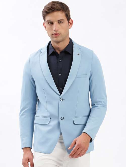 SHOWOFF Men's Notched Lapel Solid Blue Single-Breasted Blazer