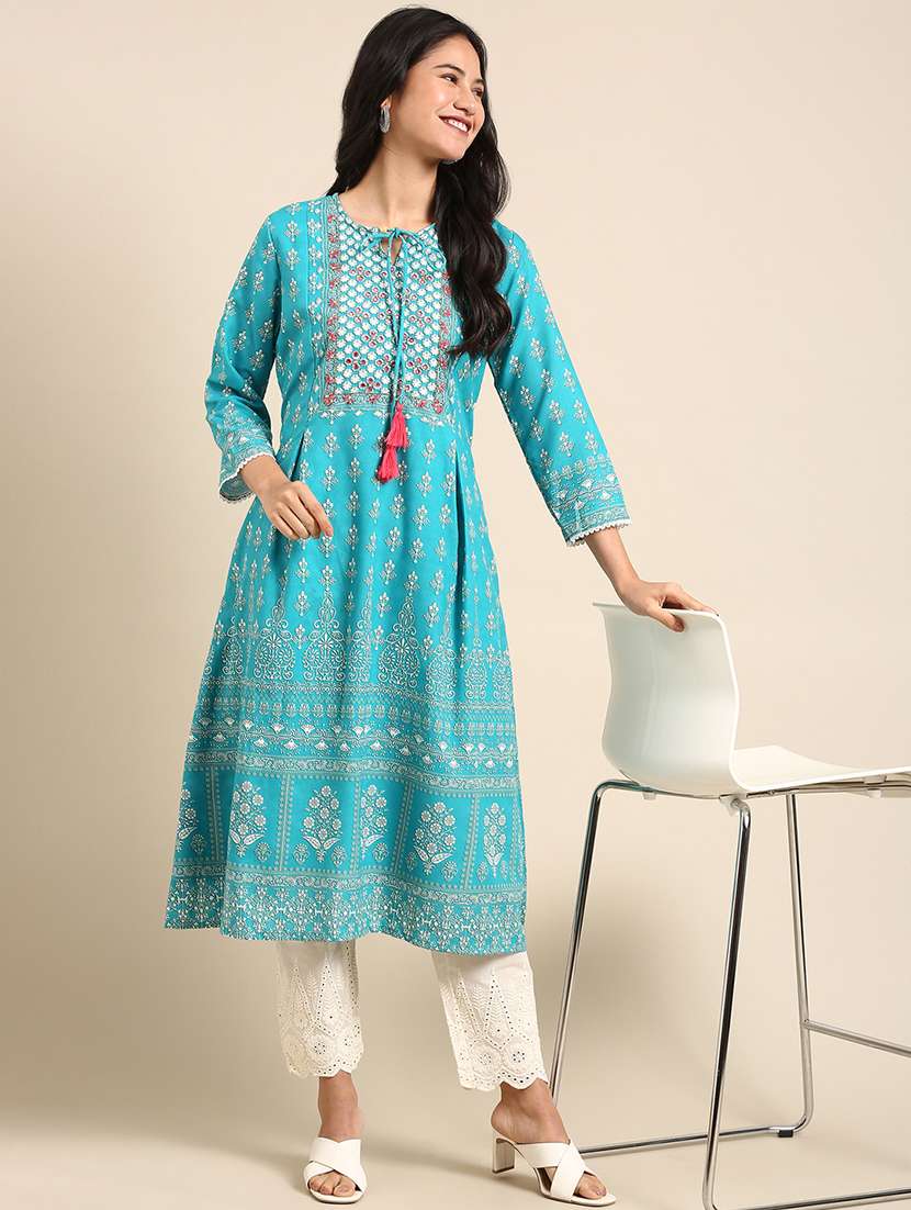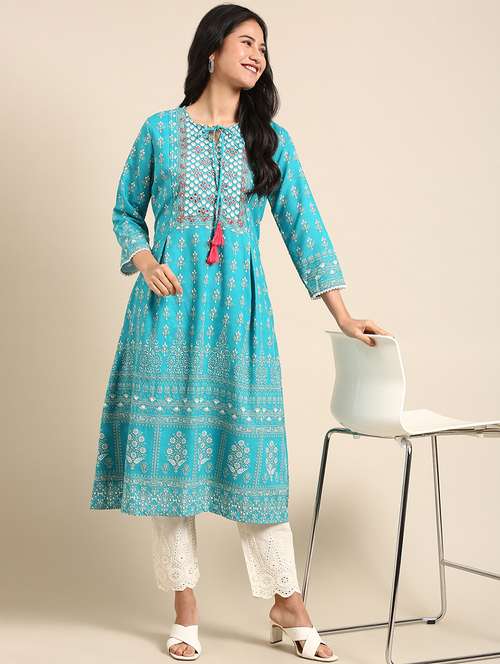 - Find gorgeous sets of ethnic wears in trending designs in blue colors suitable for casual wear of occasions.
