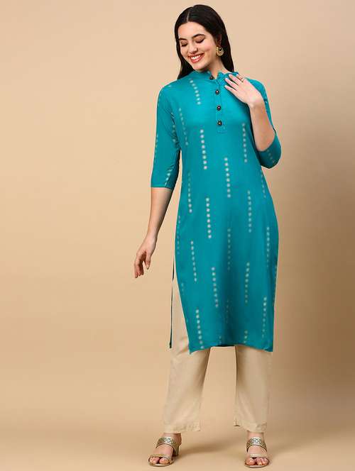 - » women printed mandarin collar straight kurta