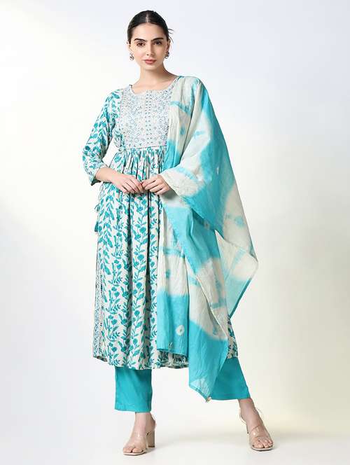 women three quarter sleeve kurta pant with dupatta set