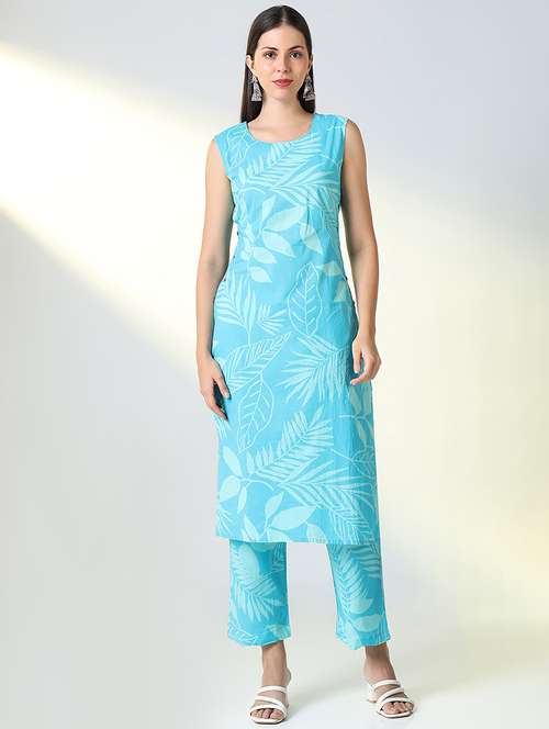 - Find gorgeous sets of ethnic wears in trending designs in light blue colors suitable for casual wear of occasions.