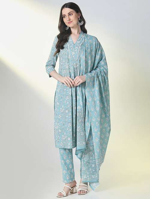 - Find gorgeous sets of ethnic wears in trending designs in light blue colors suitable for casual wear of occasions.