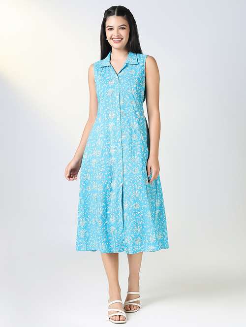 - » women floral printed sleeveless a-line dress