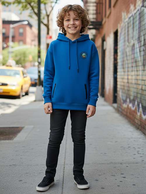 - Choose among the blue color range of comfortable style of sweatshirts suitable for a sea of occasions that young boys will love to wear.