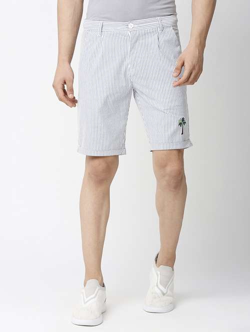 - » men striped white cotton blend casual shorts