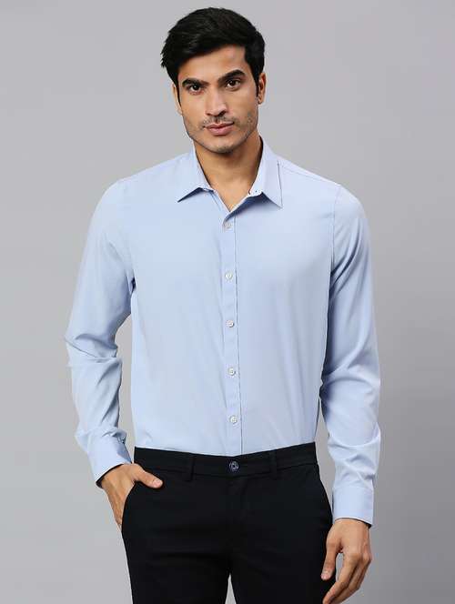 blue cotton blend formal shirt