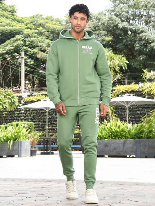 Men's Hooded Tracksuit Set Typography Print Cotton Blend Zip-Up Hoodie & Slip-On Joggers Mid-Rise Fit Long Sleeves 4 Pockets Casual Athleisure Streetwear