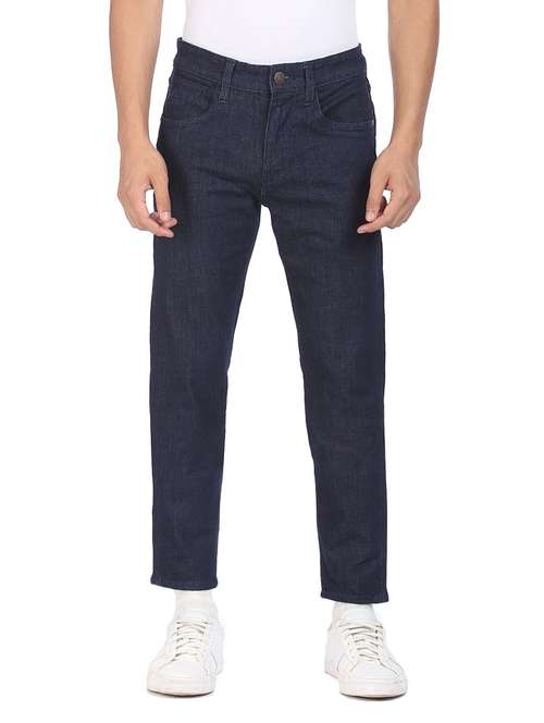 - » dark-blue plain light-washed denim jean