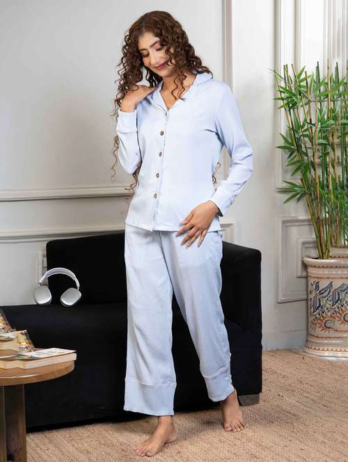 - After a long tiring day, slip into something homely, shop for the all-new collection of nightwear sets for ladies in XS sizes and gorgeous blue designs and colors.
