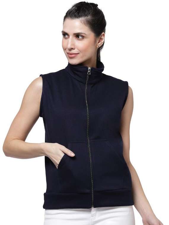 - » navy blue solid sleeveless regular jacket