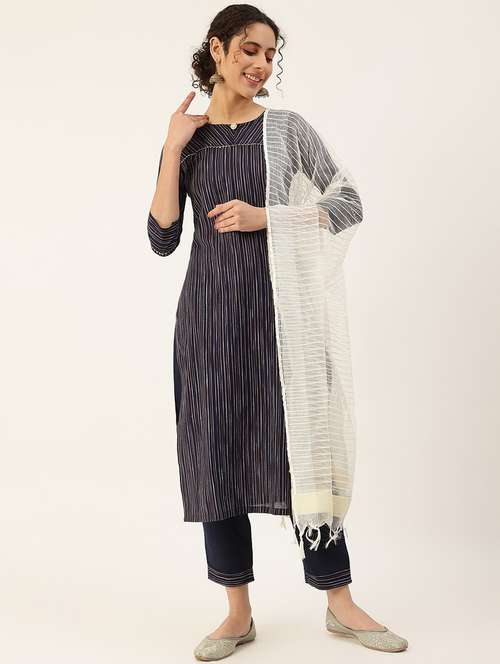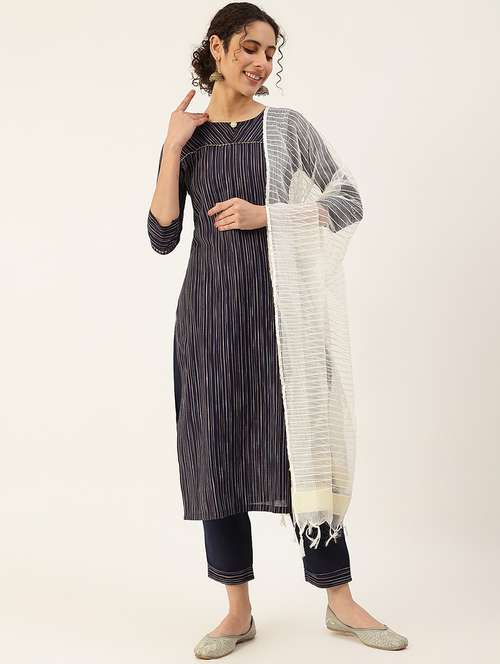 - Find gorgeous sets of ethnic wears in trending designs in blue colors suitable for casual wear of occasions.