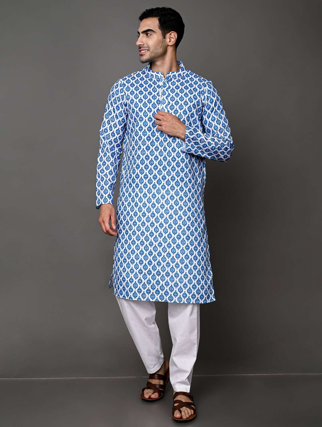 men's printed kurta pyjama set