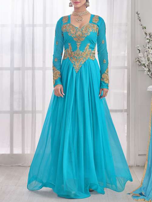 - » aqua blue embroidered cotton blend unstitched suit set