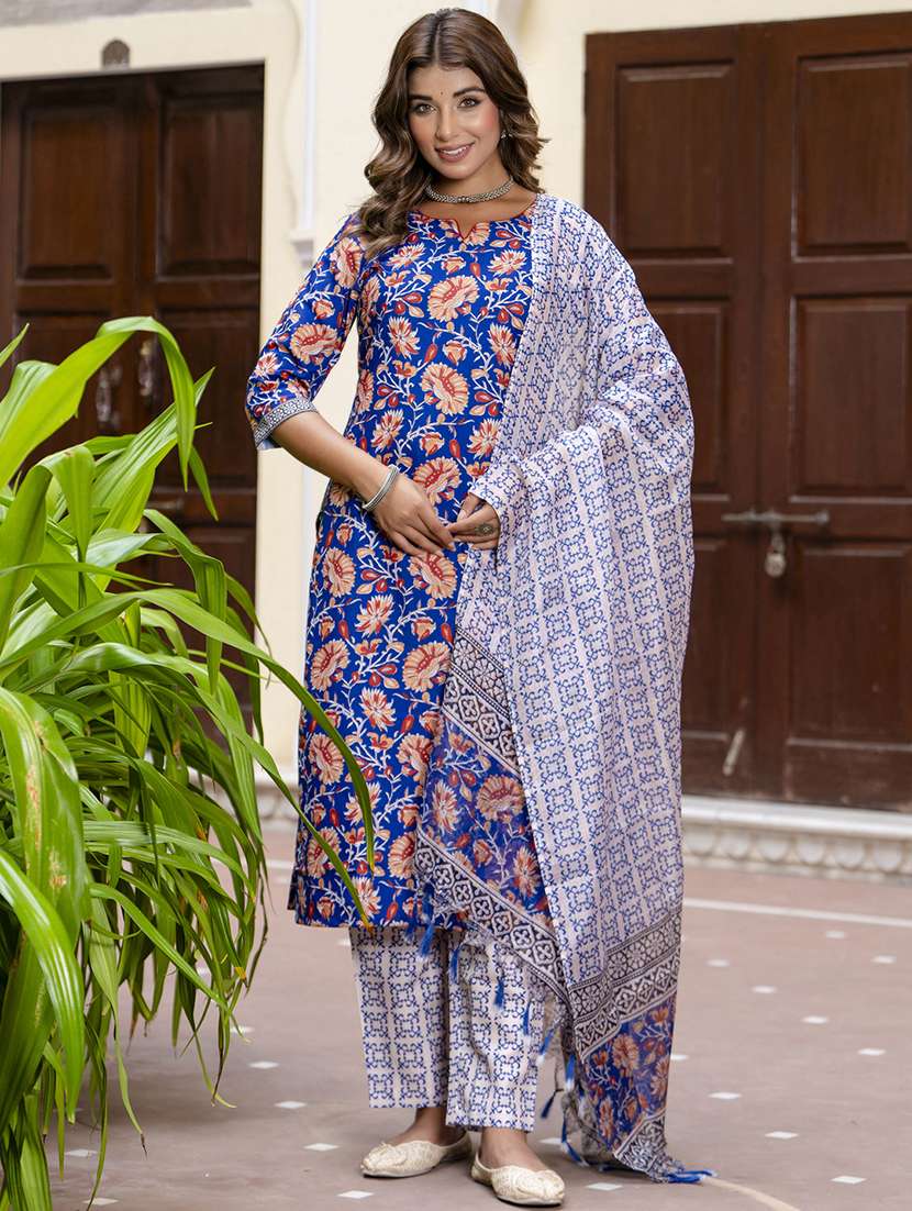 - Find gorgeous sets of ethnic wears in trending designs in blue colors suitable for casual wear of occasions.