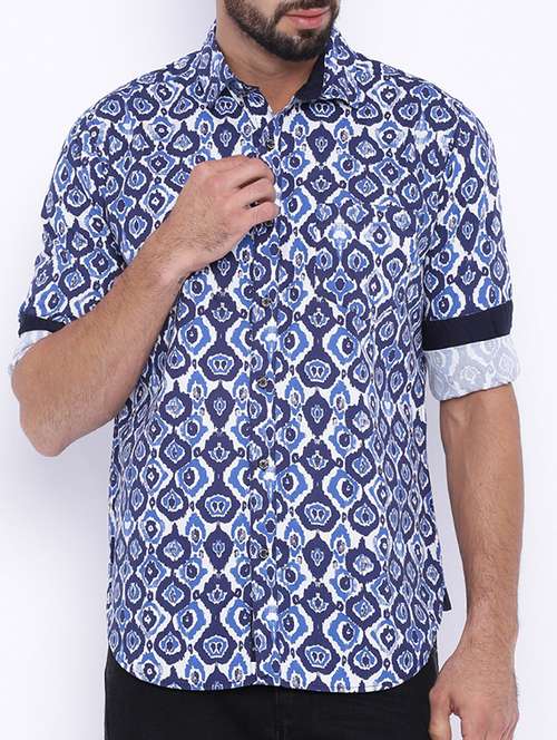 blue cotton printed casual shirt