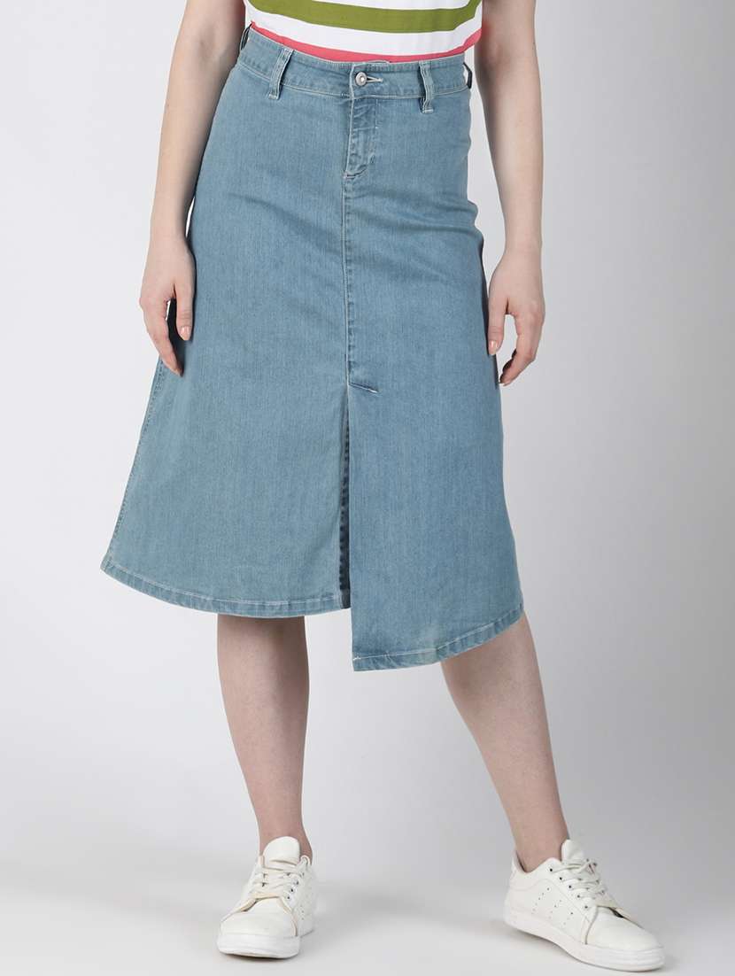 - » high rise denim a-line skirt