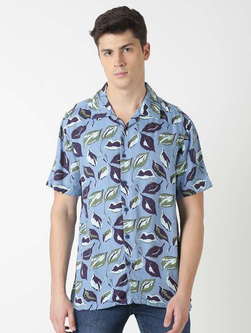 blue printed casual shirt