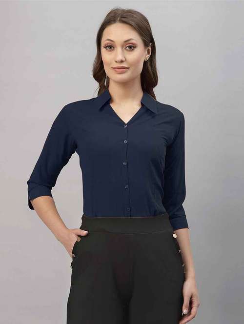 - » women solid collared three quarter sleeve shirt