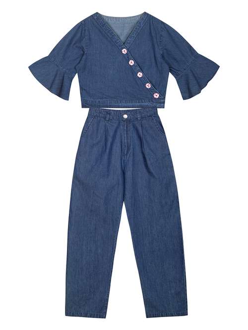 girls blue denim top & bottom set - 19838251 - Very Small Image - 1