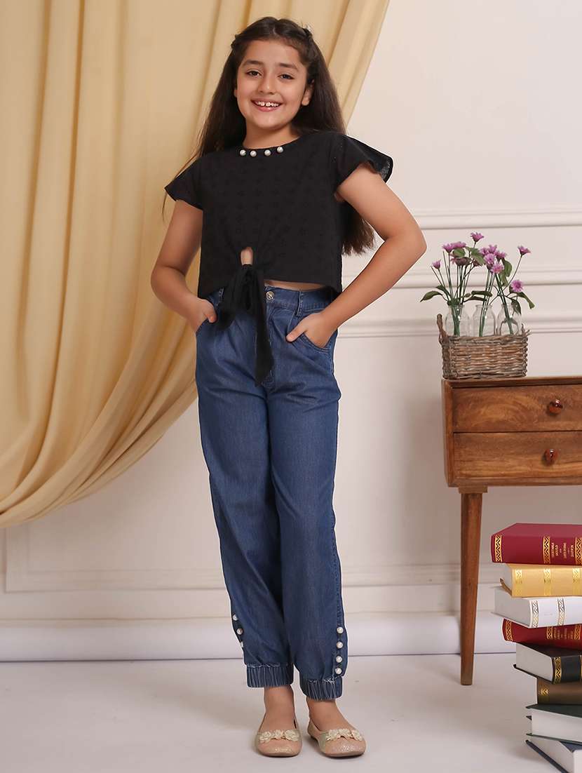 girls black self-designed full length set