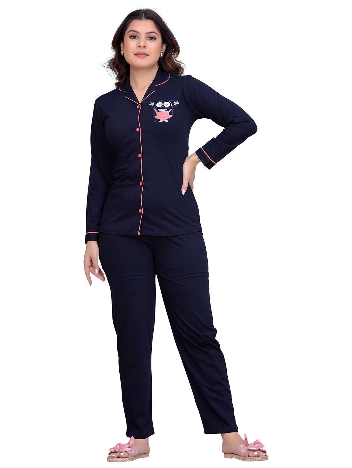 navy blue graphic print pyjama nightwear set