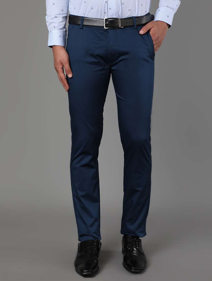 blue solid chinos