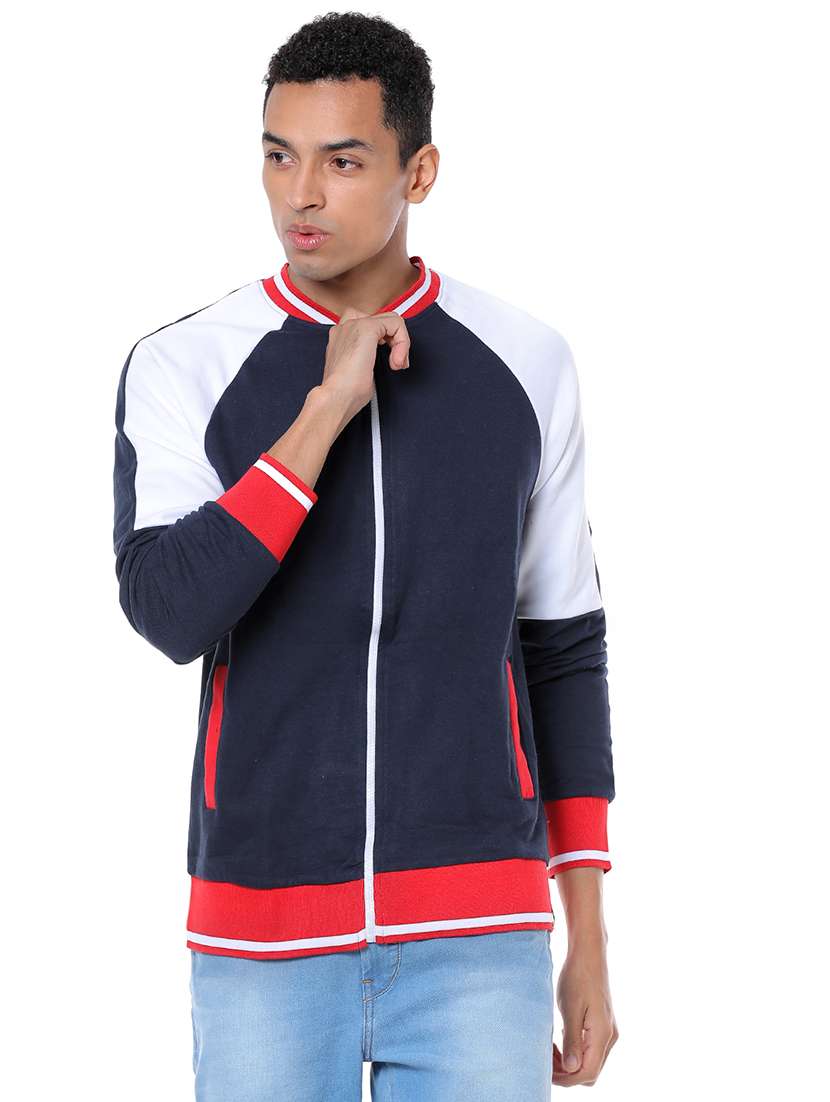 navy blue color block casual jacket