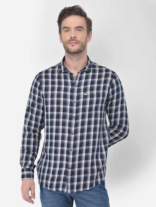 - » navy blue checkered casual shirt