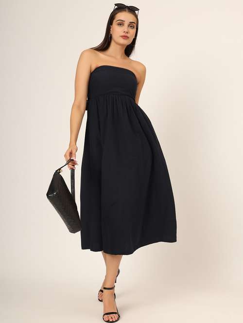 - » women black solid fit & flare dress