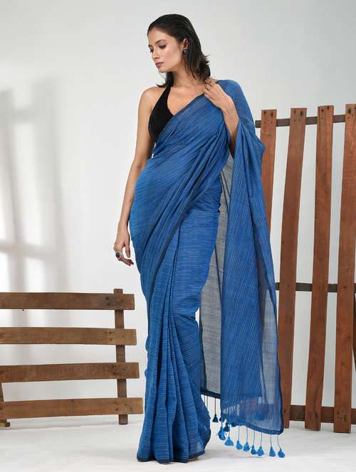- » women blue handloom saree with blouse