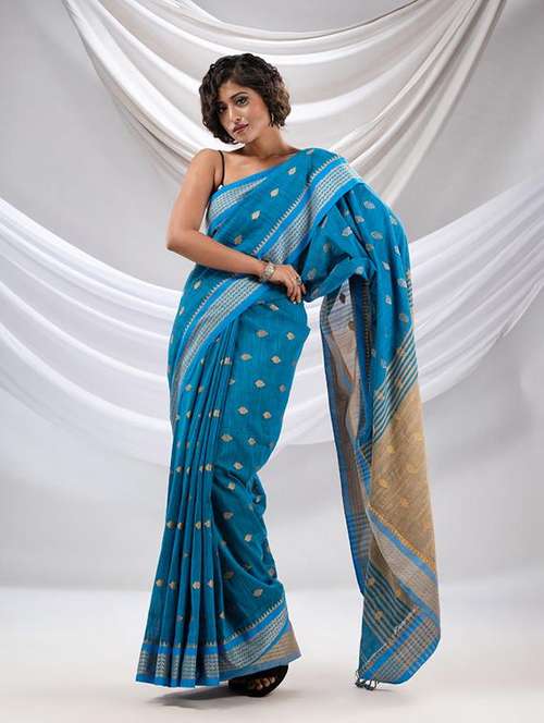 Sapphire Blue Cotton Handwoven Soft Saree With Texture Design
