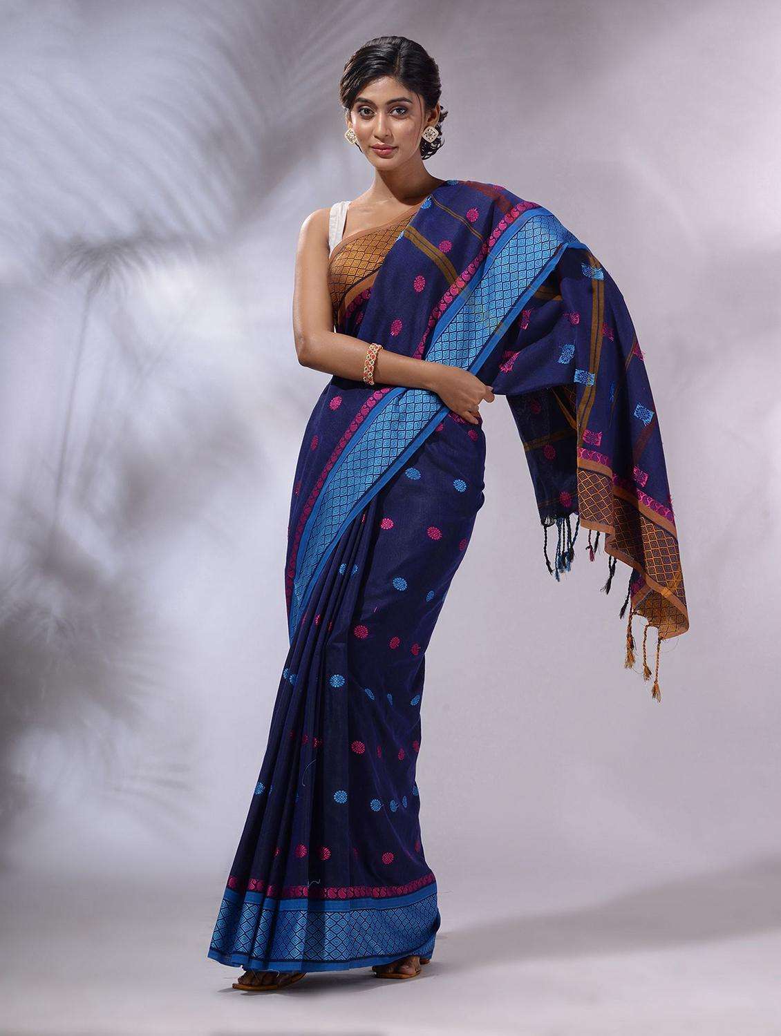 Look glamorous and alluring in this red matka silk handwoven saree. It has plain all over with zari and the borders have geometric patterns.