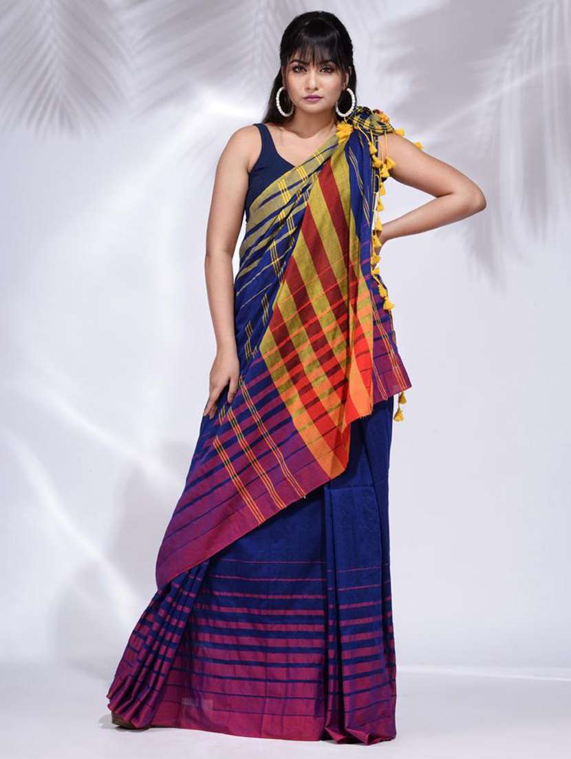 women striped handloom saree with blouse - 22045676 -  Standard Image - 1 women striped handloom saree with blouse - 22045676 -  Zoom Image - 1