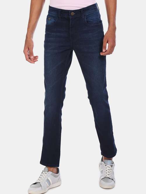 navy blue light washed denim jean