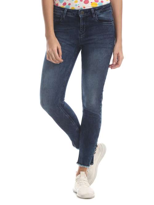 mid rise stone washed jeans