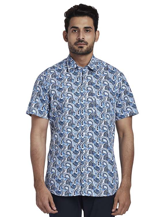 blue printed casual shirt - 17767143 - Very Small Image - 1