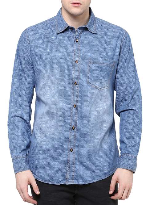 blue cotton casual shirt - 12344615 - Very Small Image - 1