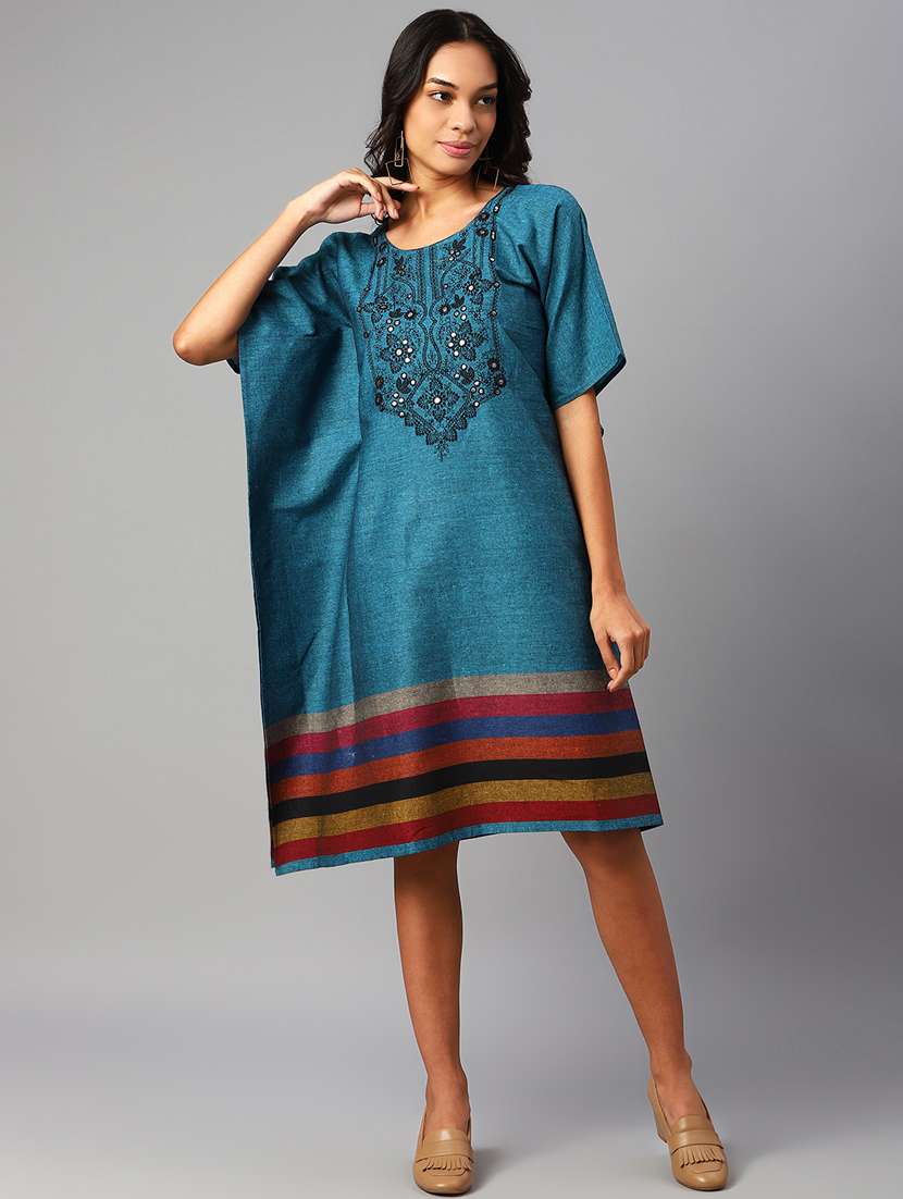 - » round neck printed kaftan dress
