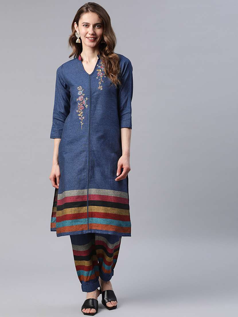 blue cotton kurta pant set