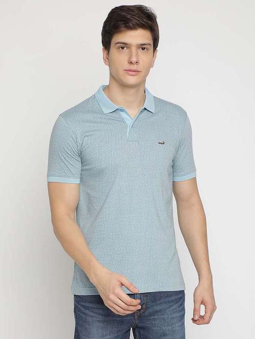 blue printed collared t-shirt